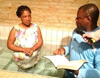 Eine kleine afrikanische Gast-Gemeinde tauft seine neuen Bekennenden im Gospelzentrum. Pastor Steffen segnet in englischer Sprache.
